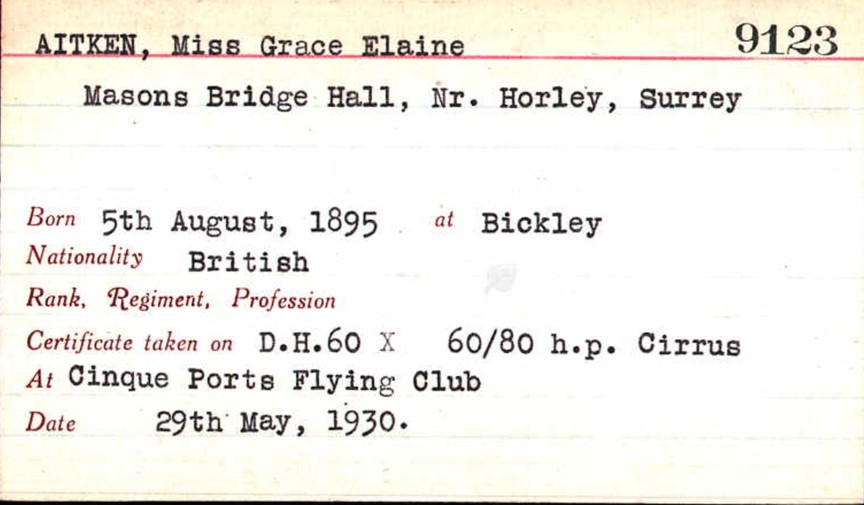 Mrs Cicely Ethel Wilkinson Royal Aero Club Certificate No. 3522 (11 Sep 1916) |